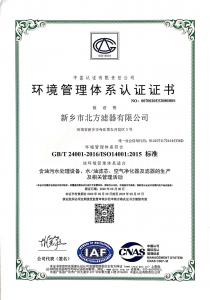 北方濾器環境管理體系認證證書中文