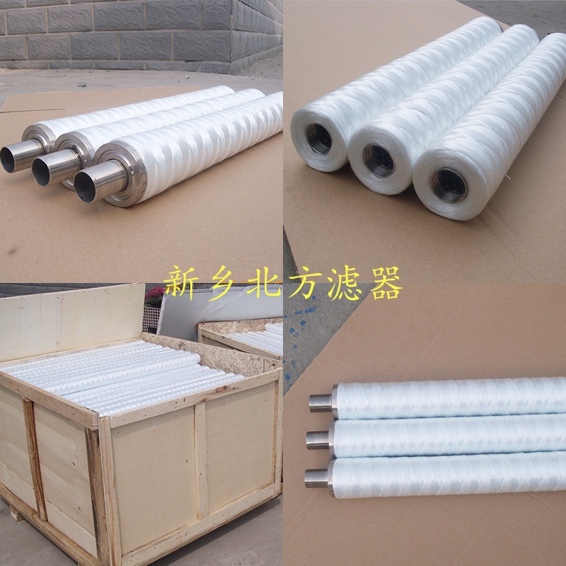 北方濾器生產的玻璃纖維線繞濾芯對液體具有較高并且穩定的過濾效率,因而其得到廣泛的應用。玻璃纖維線繞濾芯采用無堿無捻的玻璃纖維按照的順序纏繞而成,具有耐高溫、耐腐蝕、過濾精度高等特點。玻璃纖維線繞濾芯過濾精度從0.45微米到50微米,過濾面積大使得濾芯過濾壽命長,初始壓降低。
